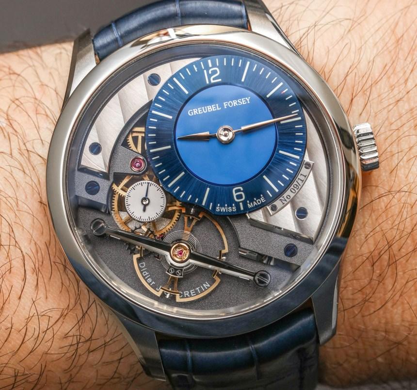 2. **Movement: ** Powered with the GFS1 manual-winding movement, put together by Greubel Forsey over six years, this movement presents the pinnacle of movement finishing. Typically the movement features a massive 12. 6 mm diameter harmony wheel, with an in-house hairspring oscillating at 18, 000 vph. Both the balance tire and balance bridge are usually finished with a top-grade african american mirror polish. The escapement is located on the side of the call, with the gear train evidently visible. The mainspring lens barrel is coaxially fitted with hours and minute ratchet equipment, secured by a delicate three-arm bridge.