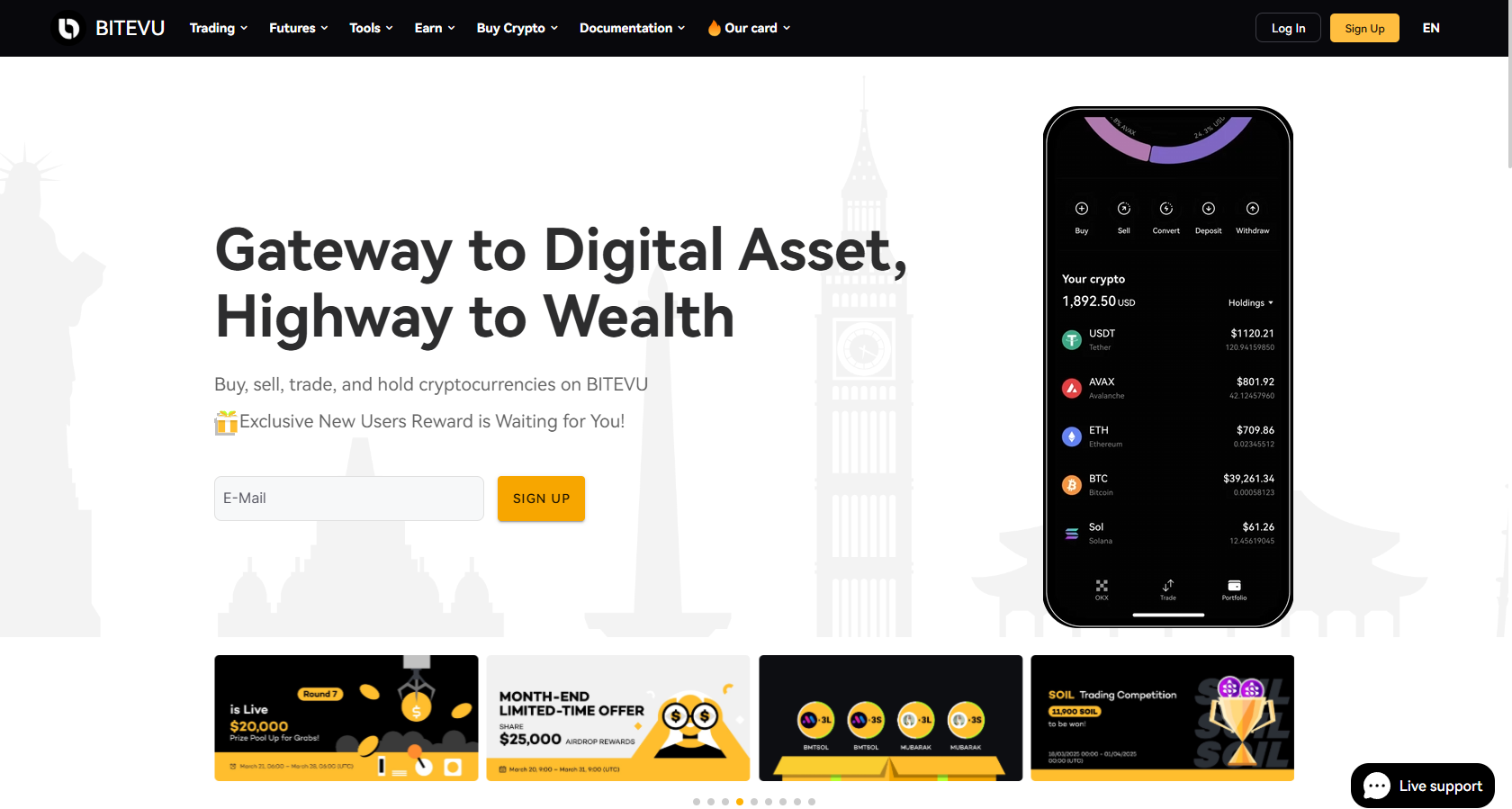 BITEVU, появившаяся в 2022 году, представляет собой некастодиальную анонимную платформу для обмена криптовалют. Основные акценты сделаны на приватность и скорость работы, при этом KYC не требуется.