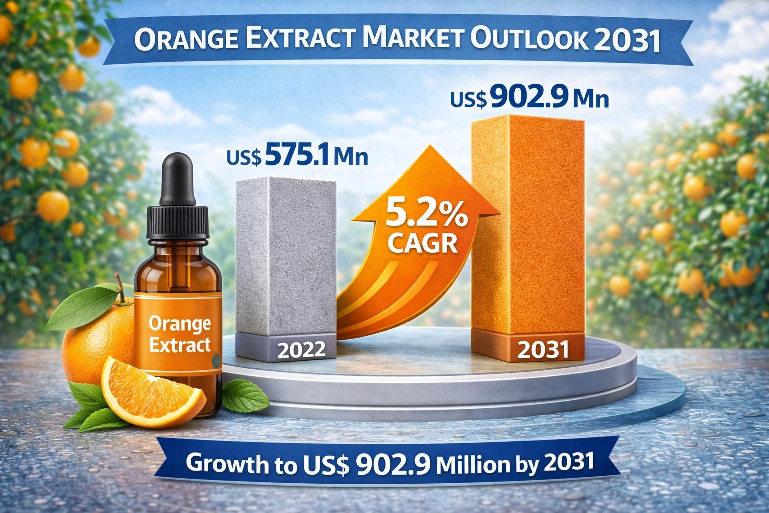 The global orange extract market is witnessing steady expansion, driven by increasing consumer preference for natural flavors, clean-label products, and sustainable ingredients. Valued at US$ 575.1 million in 2022, the market is projected to grow at a CAGR of 5.2% from 2023 to 2031, reaching US$ 902.9 million by the end of 2031. This growth reflects the rising adoption of orange extracts across food & beverage, cosmetics, and pharmaceutical applications.